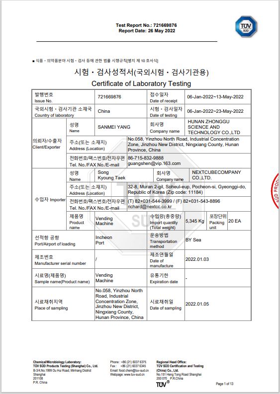 식약처 위생안전검사 시험성적서